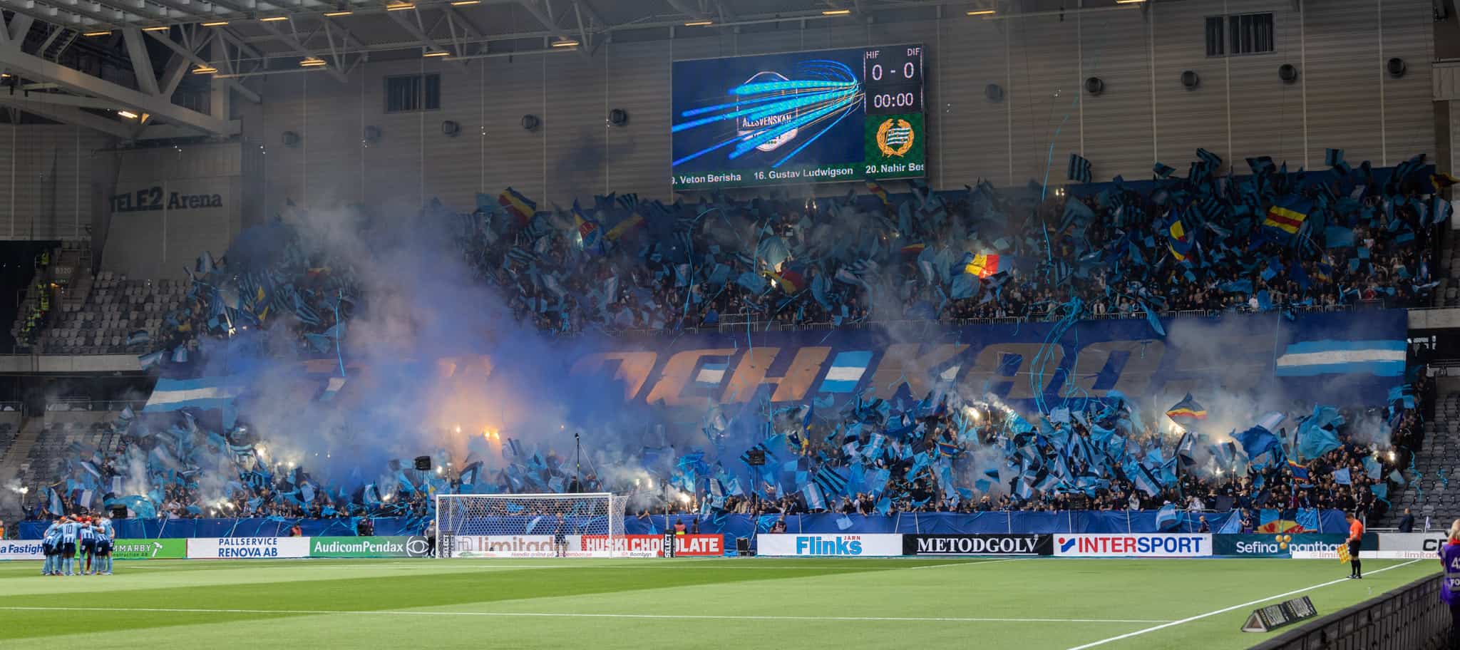 The Stockholm Derby is fought not only on the pitch, but even more so in the stands. Many times, the spectacular scenes feature in the annual rankings of Europe’s finest derbies. With both short sides of the stadium filled with fanatical supporters looking to outdo each other, it is a guarantee for fireworks. Once again, we are not disappointed.