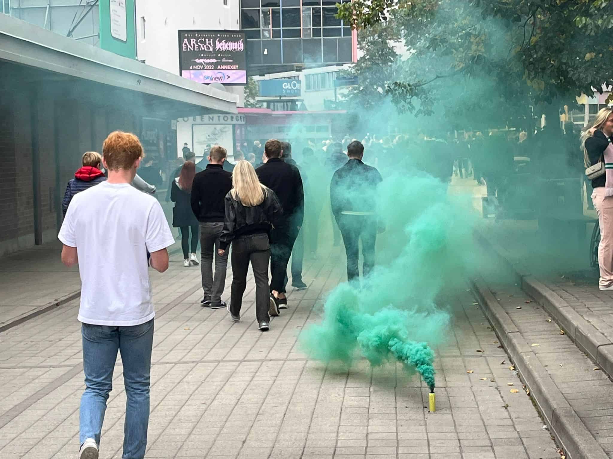 Late in the morning, we leave for Sodermalm. The flow of green and white towards this lively Stockholm district is already well underway. Even a stray away supporter can be found here and there. Before long, we are enjoying our first beers as the derby atmosphere builds. We have found our spot in one of the pubs belonging to the Bajen Ultras, the fanatical supporters of Hammarby.